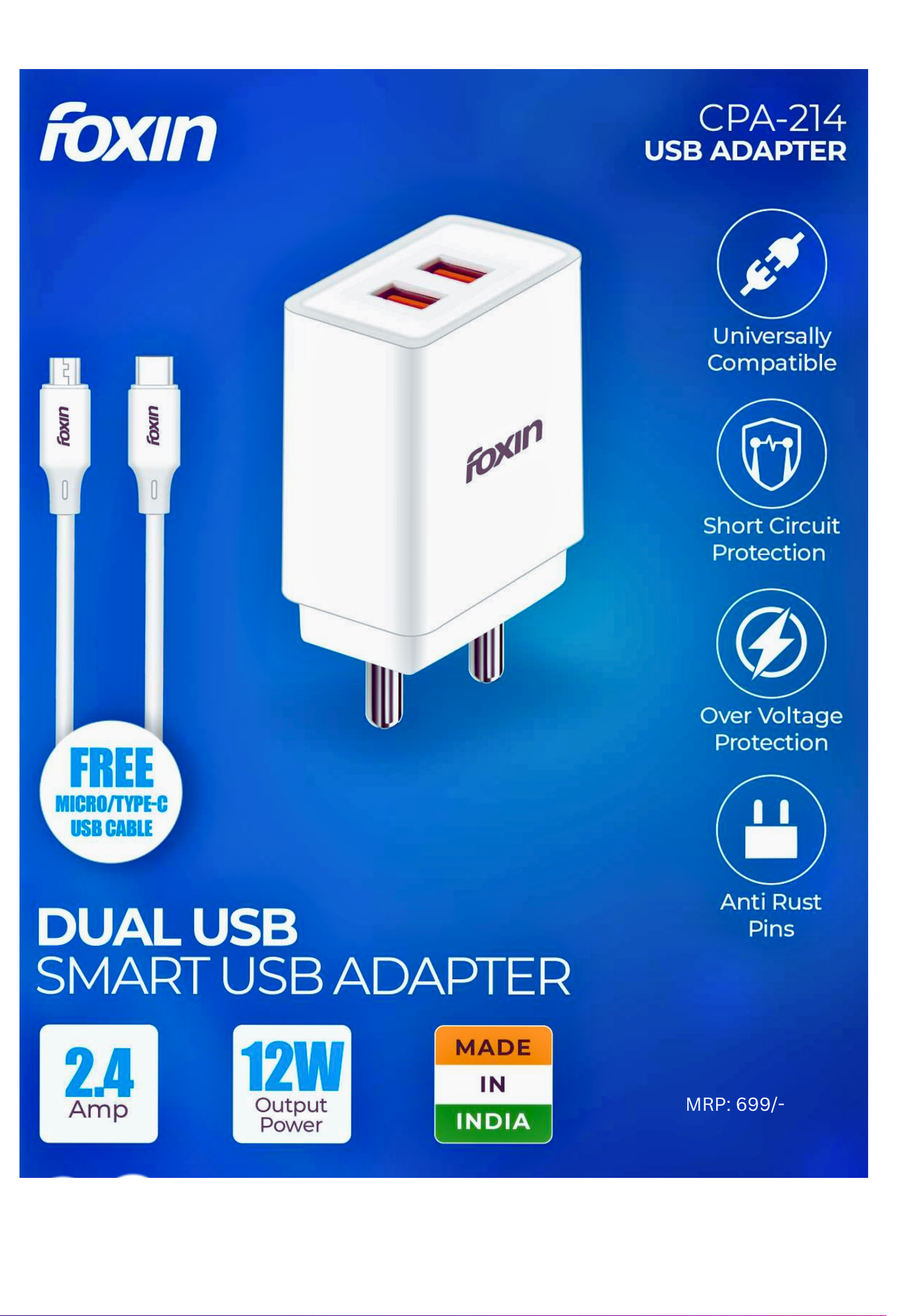 This 2.4A 12W adapter delivers fast and efficient charging for smartphones and other USB-powered devices. It provides stable power output with built-in protection against overcharging, overheating, and short circuits. The compact and durable design makes it convenient for home, office, and travel use. Compatible with a wide range of devices, it ensures safe and reliable everyday charging.