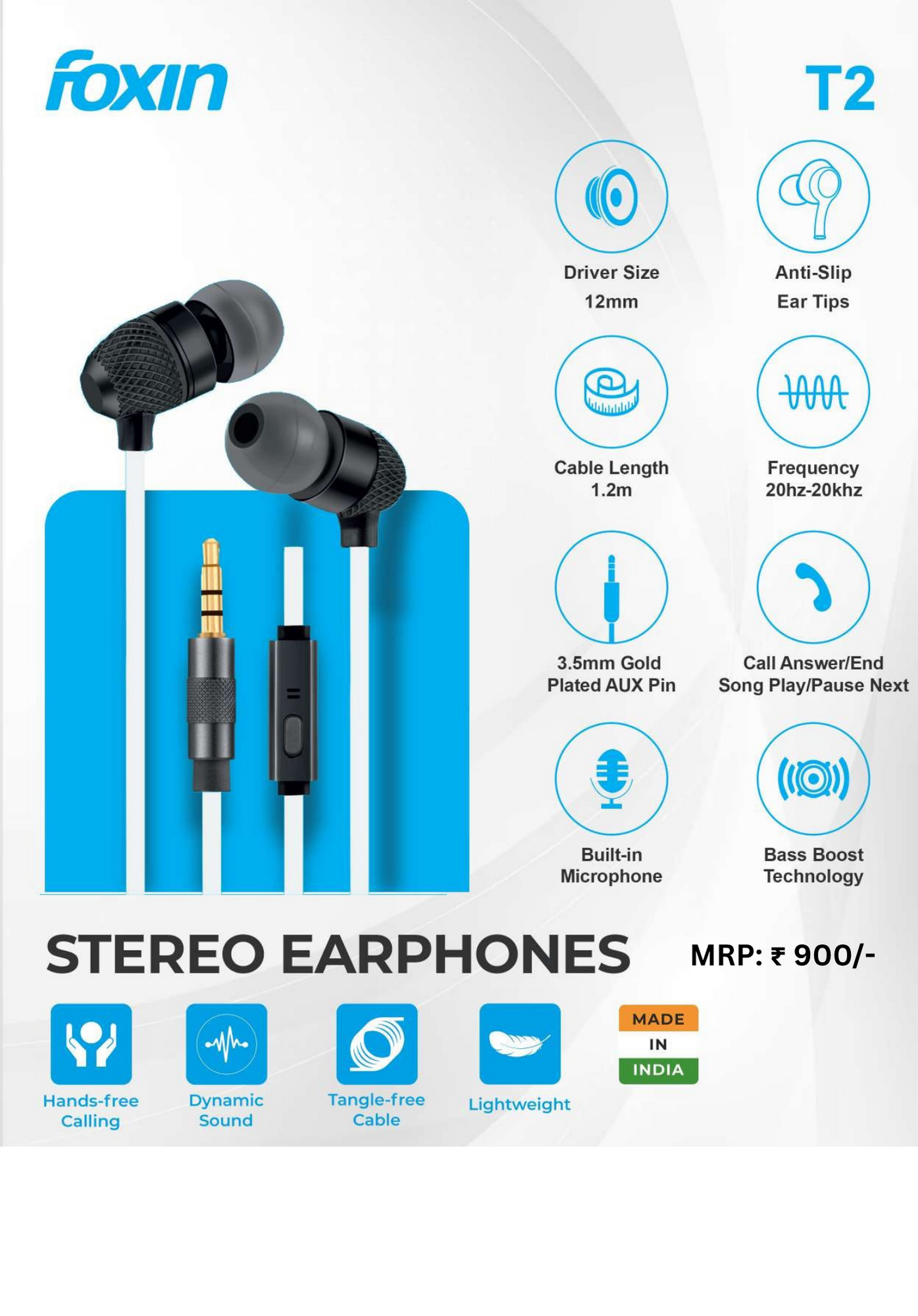 Enjoy deep, punchy bass and clear audio with these black earphones designed for music lovers. The bass boost feature enhances low frequencies, delivering a rich and immersive listening experience. Lightweight and comfortable, they are perfect for daily use, workouts, and on-the-go listening.