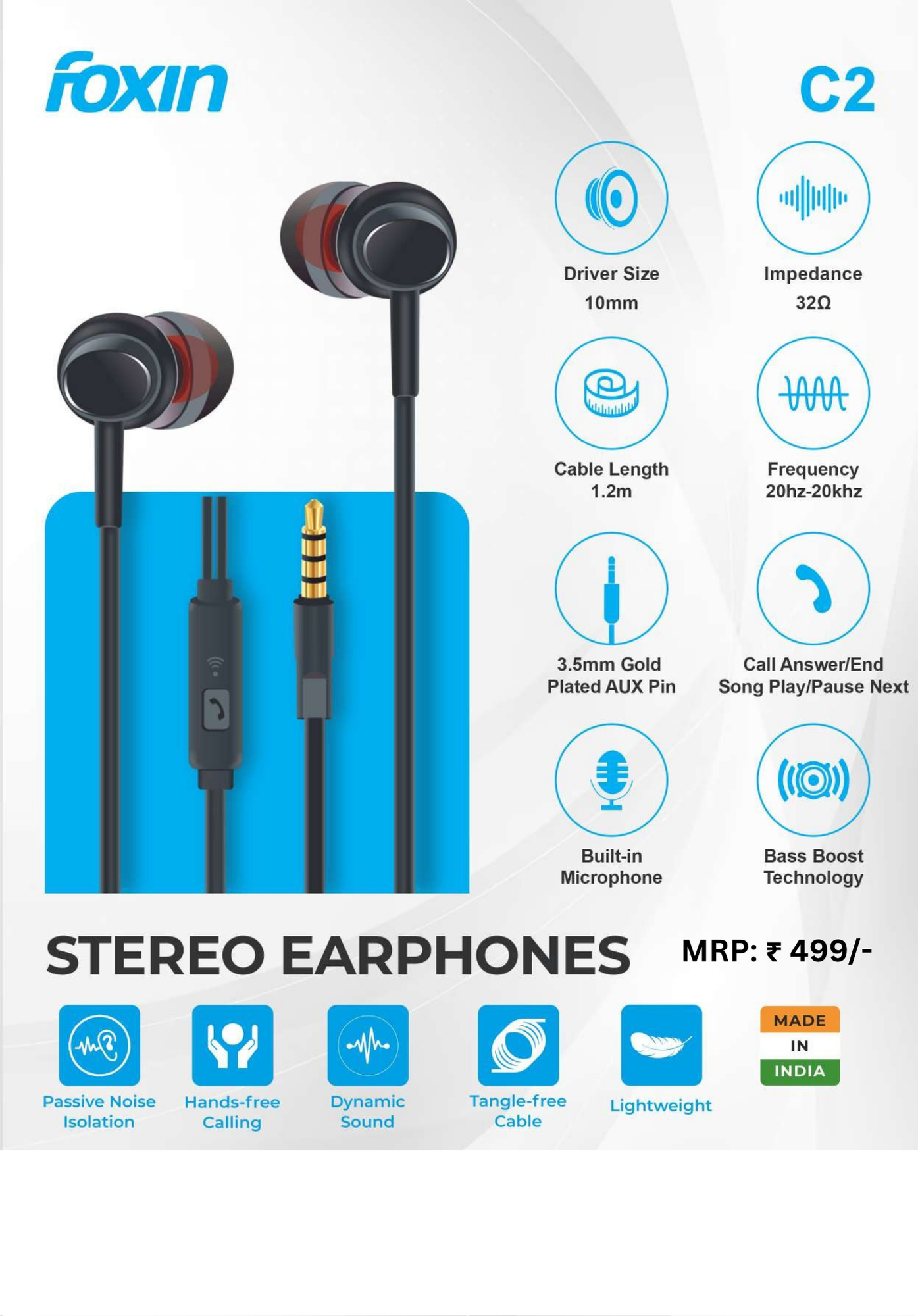 The comfortable in-ear design ensures a secure fit, while the built-in microphone allows convenient hands-free calling.