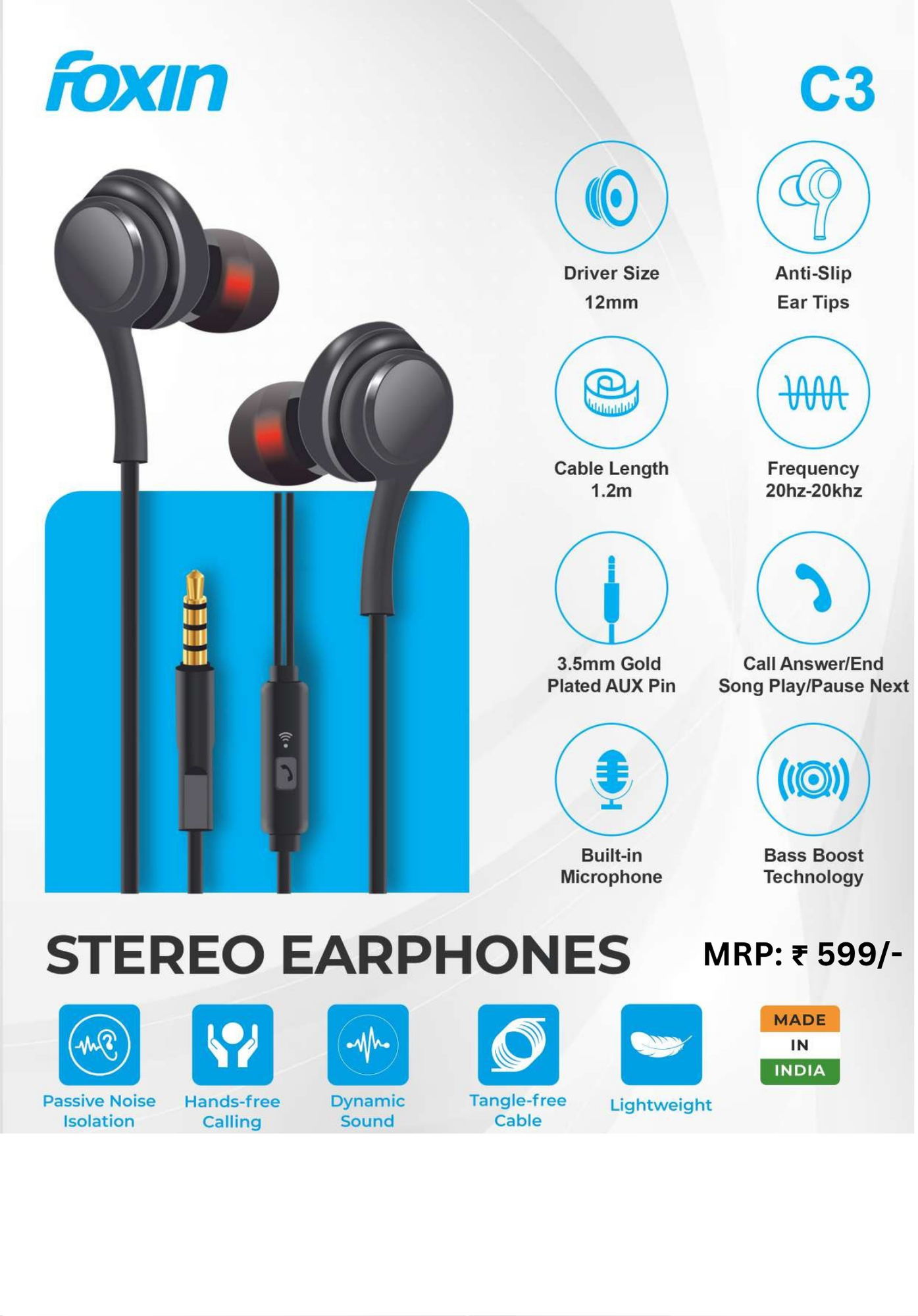 Enjoy clear and balanced stereo sound with these earphones featuring a 10 mm dynamic driver for enhanced audio performance.